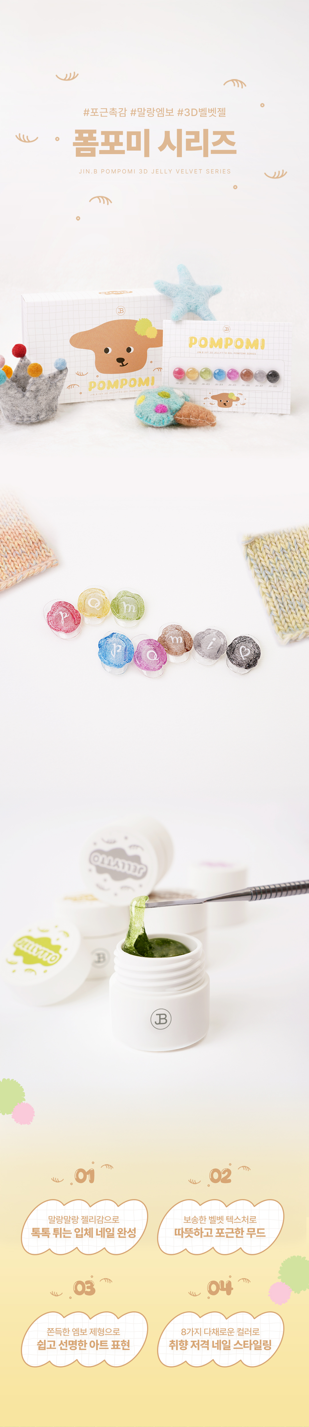 포근한 벨벳에 더해진 젤리 같은 탱글함, 입체적인 텍스처로 키치한 매력을 살린 엠보 젤 폼포미