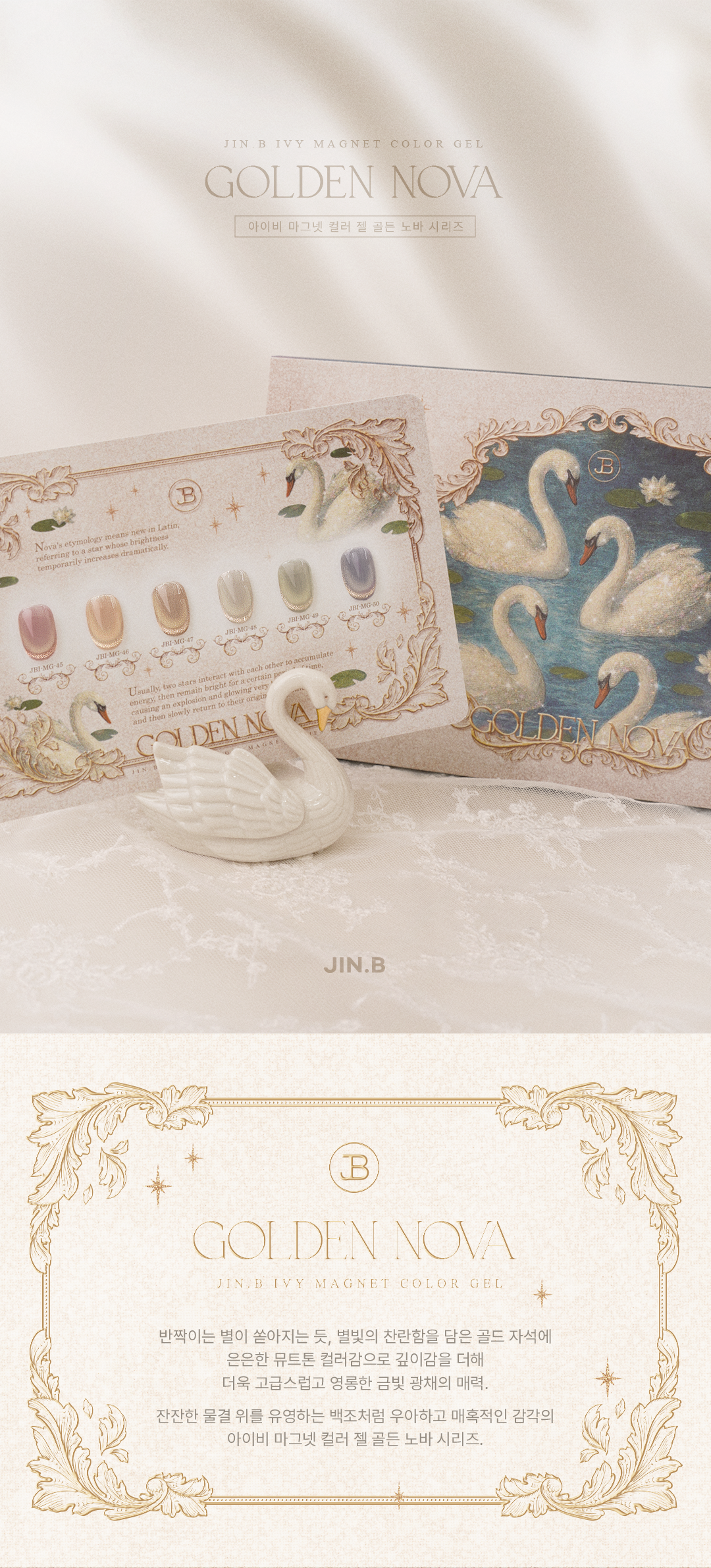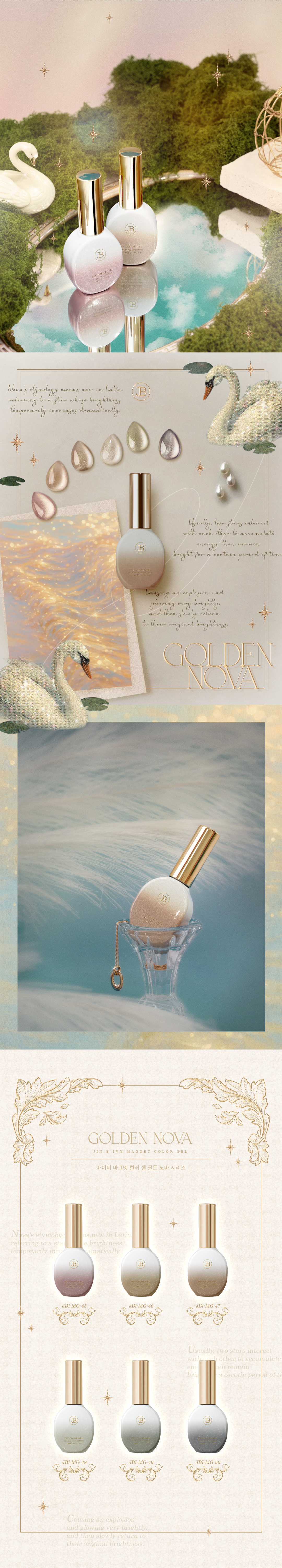 뮤트톤 베이스에 쏟아지는 찬란한 금빛 광채, 매혹적이고 우아한 골드 자석 젤 골든노바